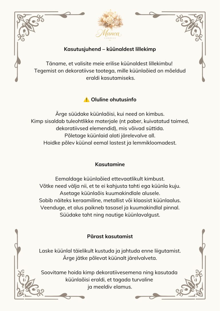 Käsitööna valminud küünaldest lillekimp on luksuslik kingitus, mis ühendab endas lillede ilu…